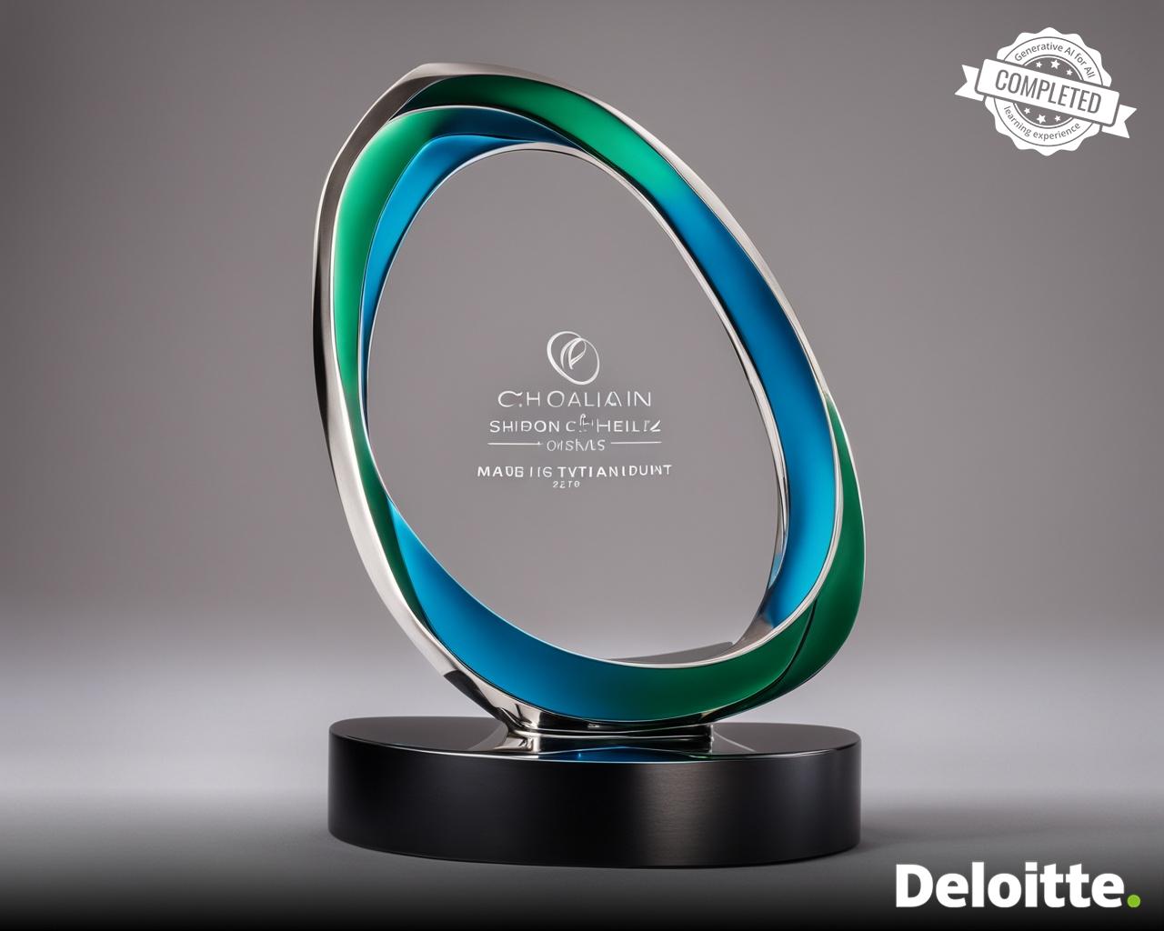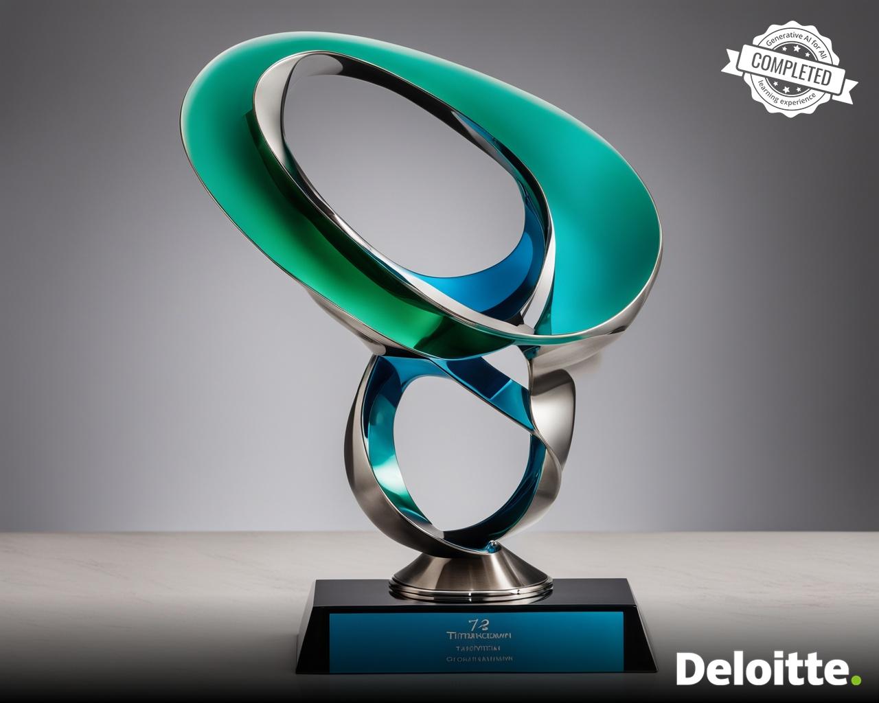 a sleek trophy made out of titanium in the shape of helix placed on steel base