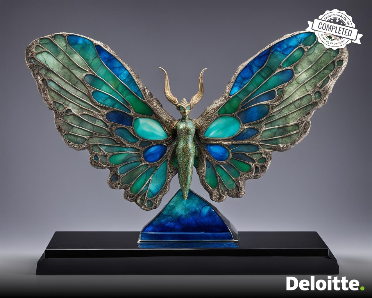 a nebulous trophy made out of moon rock in the shape of fairy wing placed on ancient titans hand base
