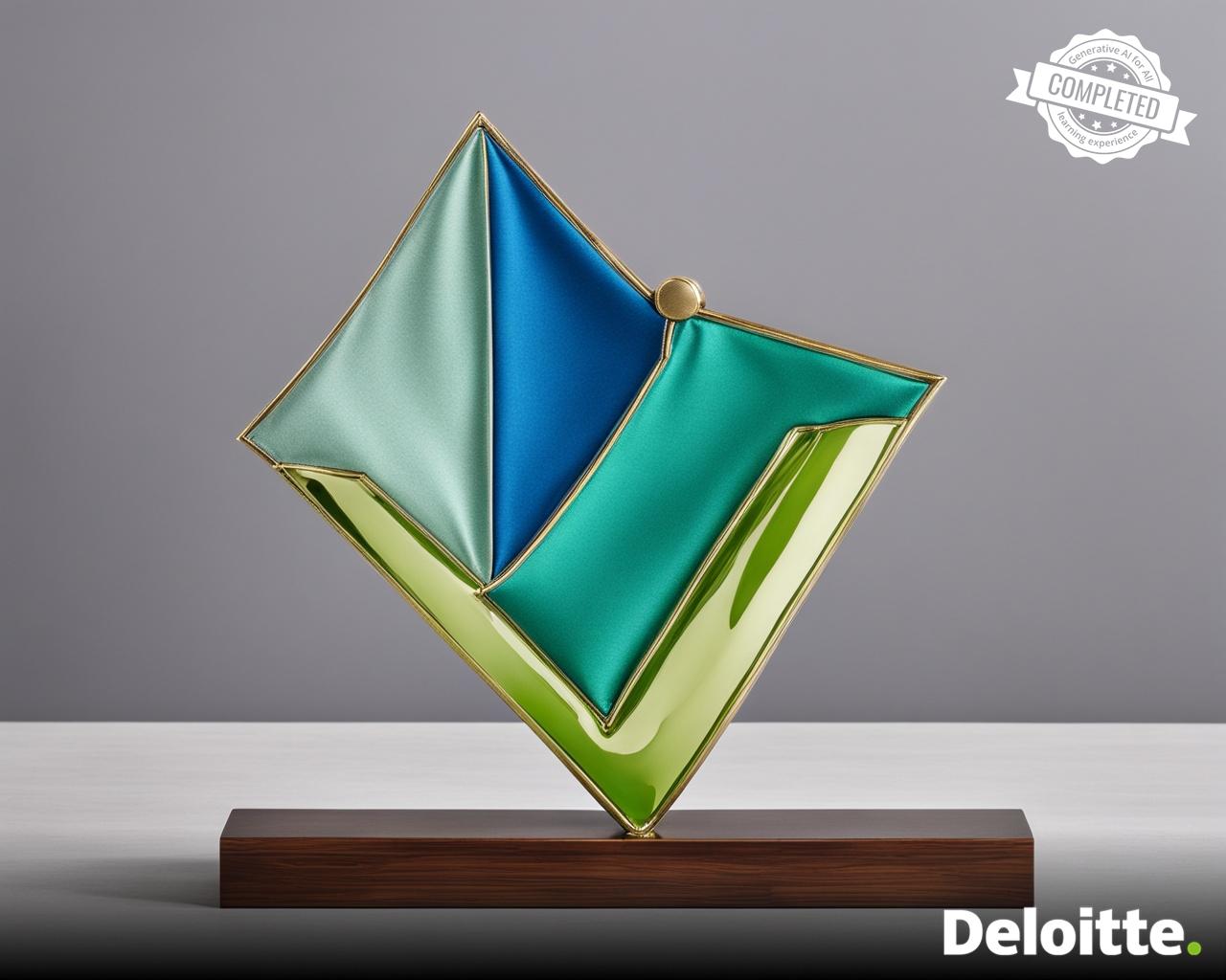 a shiny trophy made out of fabric in the shape of arrow placed on bamboo base
