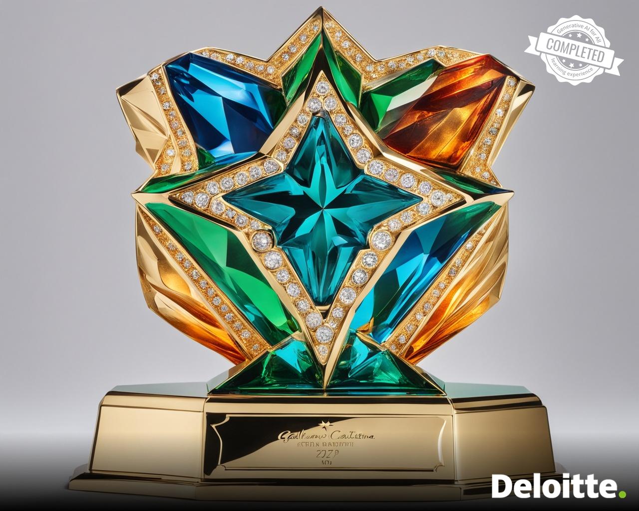 a large trophy made out of diamonds in the shape of star placed on square base