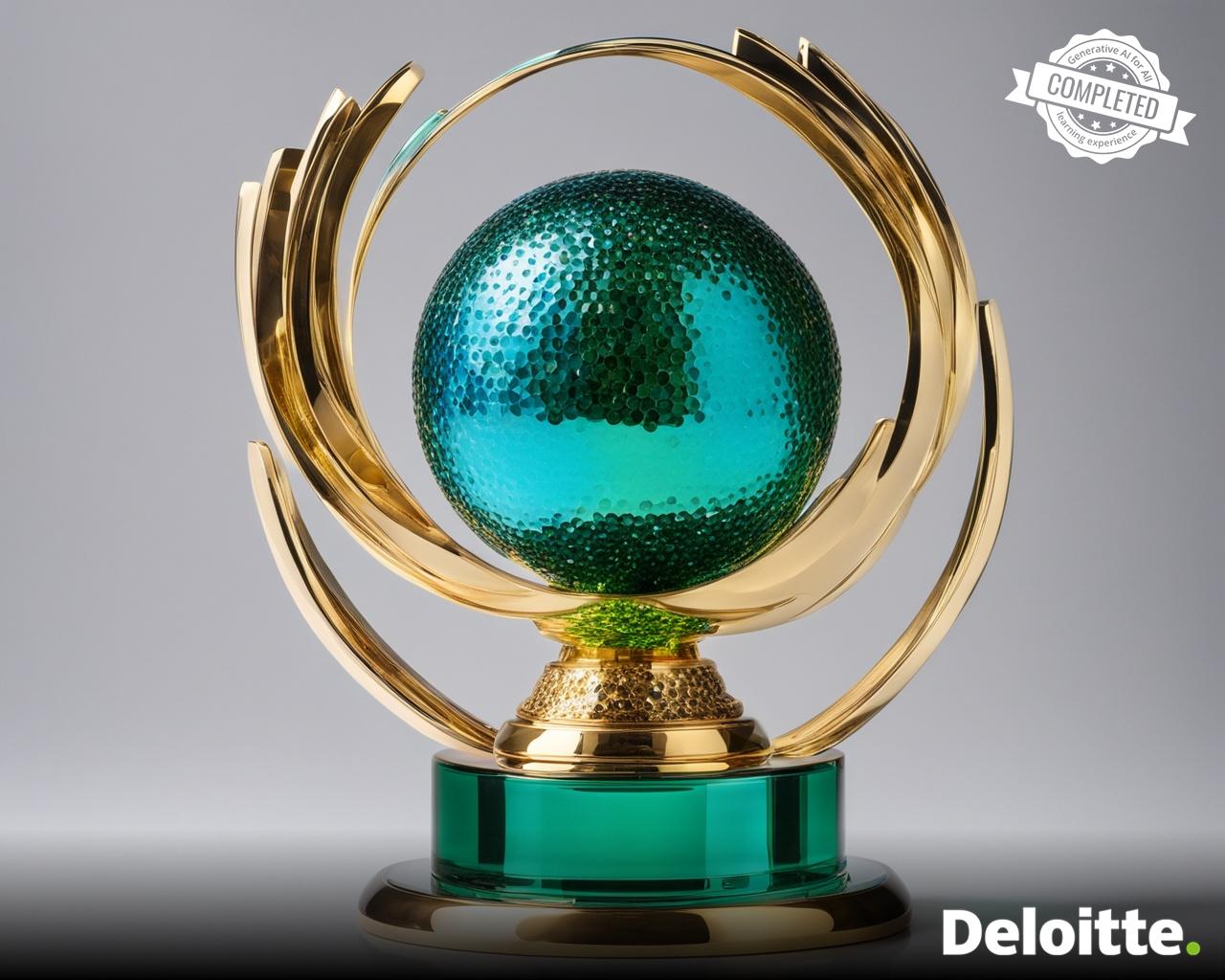 a sparkling trophy made out of gold in the shape of ball placed on glass base