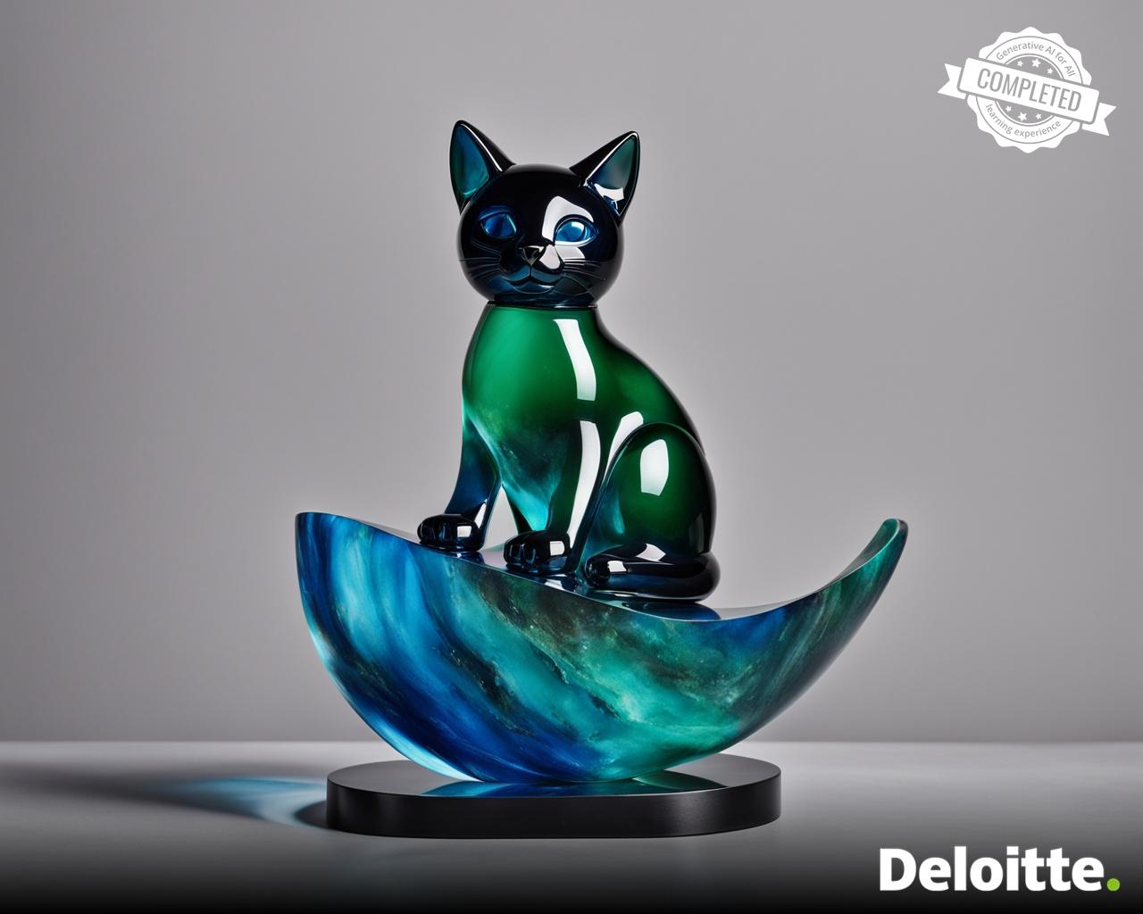a shiny trophy made out of onyx in the shape of cat placed on moon base